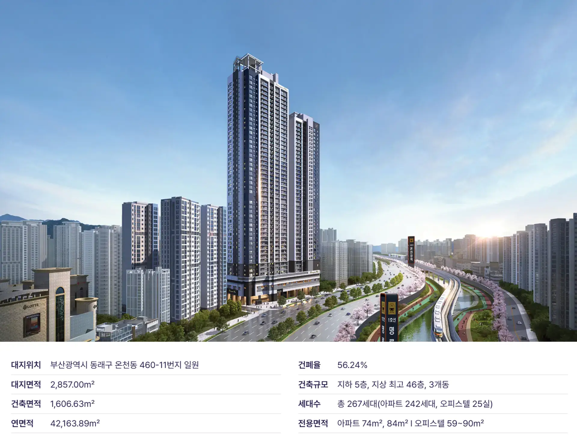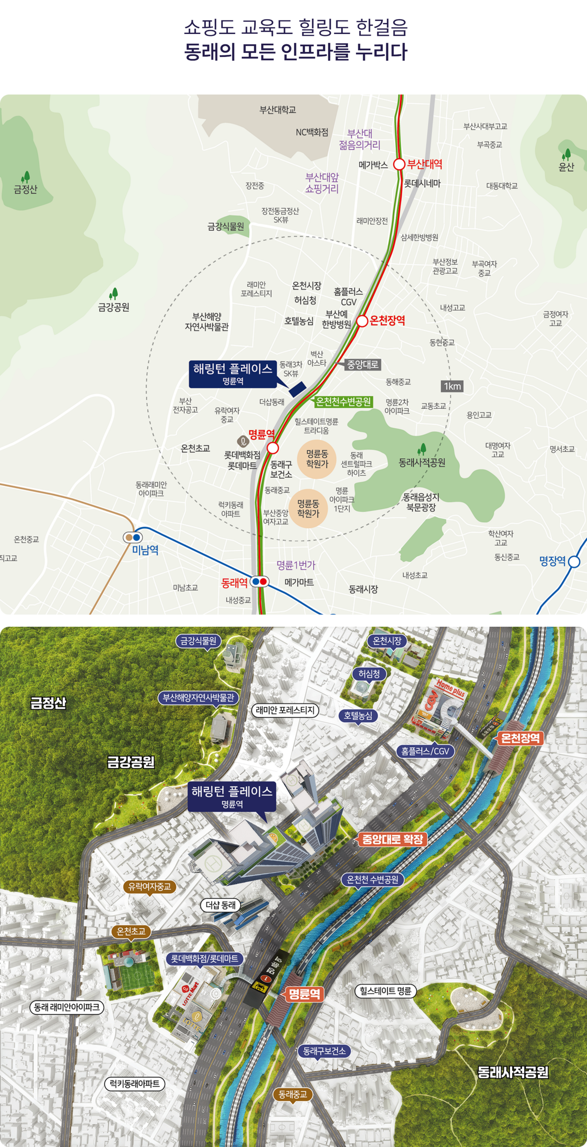 부산 동래 지역의 전통적인 명문 학군과 명륜동 학원가를 편리하게 이용할 수 있어 최적의 면학 분위기와 교육 인프라를 갖춥니다.